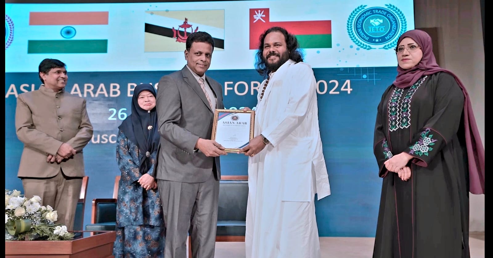 ഇന്‍വെസ്റ്റ് ഒമാന്‍ ഡയറക്ടര്‍ ജനറല്‍ നസിമ ബിന്‍ത് യഹ്യ അല്‍ ബലൂഷി, ഒമാനിലെ സുല്‍ത്താനേറ്റിലെ ബ്രൂണൈ ദാറുസ്സലാം അംബാസഡര്‍ എക്സലന്‍സി നൊറാലിസന്‍ അബ്ദുള്‍ മോമിന്‍, ഏഷ്യന്‍ അറബ് ചേംബറിന്റെ ഗ്ലോബല്‍ പ്രസിഡന്റ് ഡോ. അസിഫ് ഇഖ്ബാല്‍ എന്നിവര്‍ സമീപം.