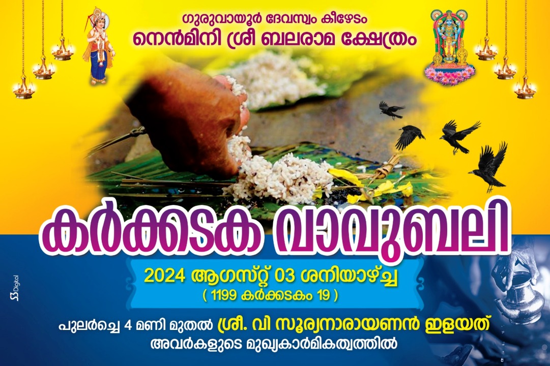 ഗുരുവായൂർ ദേവസ്വം കീഴേടമായ നെൻമിനി ശ്രീബലരാമ ക്ഷേത്രത്തിൽ കർക്കടകവാവു ബലിക്ക് വിപുലമായ സൗകര്യങ്ങൾ ഏർപ്പെടുത്തയിട്ടുണ്ട്. കർക്കടകവാവു ബലിദിനമായ ആഗസ്റ്റ് 3 ശനിയാഴ്ച ഭക്തർക്ക് സുഗമമായ ബലിതർപ്പണത്തിന് അവസരമൊരുക്കാൻ അധികം ജീവനക്കാരെ ക്ഷേത്രത്തിലേക്ക് നിയോഗിച്ചു. ക്ഷേത്രവും പരിസരം വൃത്തിയാക്കാനും നടപടിയായി. കൂടുതൽ സുരക്ഷാ ജീവനക്കാരെ നിയോഗിക്കാനും ദേവസ്വം ഭരണസമിതി തീരുമാനിച്ചിട്ടുണ്ട്.